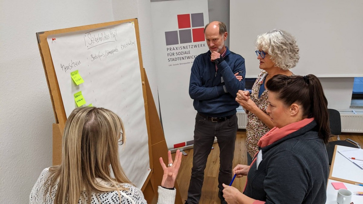 Hannah ha formato una squadra preliminare composta da 3 assistenti sociali, 2 insegnanti, 3 residenti e 1 rappresentante della principale società immobiliare locale. In una prima sessione di workshop, hanno familiarizzato con la mentalità e il processo di pensiero del design studiando la piattaforma di formazione d.thinking individualmente. Dopo aver raccolto opinioni riguardanti la questione chiave, hanno formulato la seguente sfida Design Thinking come punto di partenza: