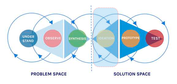 Stai entrando nella Fase di Ideazione armato di una formulzione del problema che si basa su una Persona, che hai creato sulla base delle tue numerose interviste con gli stakeholder, il processo di spacchettamento e infine il processo di sensemaking.